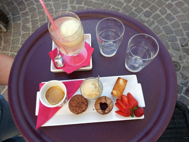 Par contre, nous avons développé une large offre de cocktails de fruits frais, de smoothies, de coupes fruitées glacées, sans oublier les milk shakes, les sorjus, les boules flottantes... Et une nouveauté gourmande : la Bomba, une boule de glace ou de sorbet dans une brioche snackée, servie chaude, un contraste chaud/froid des plus gourmand...Sans oublier nos douceurs sucrées, tartelettes, minis cakes... Et bien sûr des boissons chaudes et fraîches. Nous vous attendons avec plaisir pour vous faire découvrir toutes ces bonnes choses !!!
